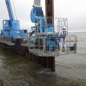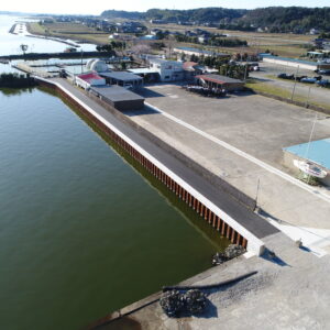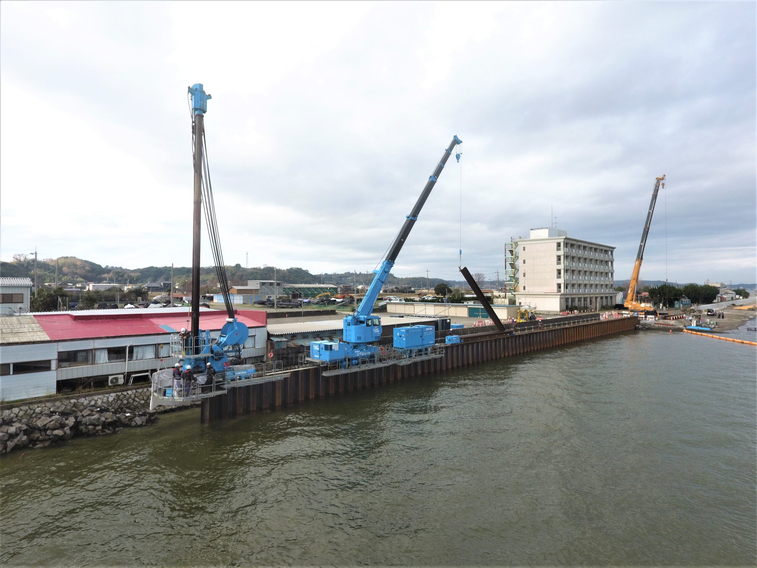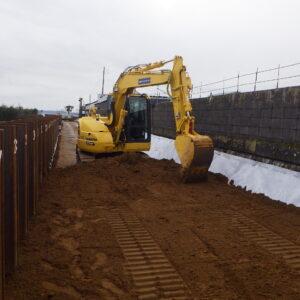 霞ヶ浦(北浦)における無堤部対策工事であり、鋼矢板による特殊堤の護岸整備を行いました。