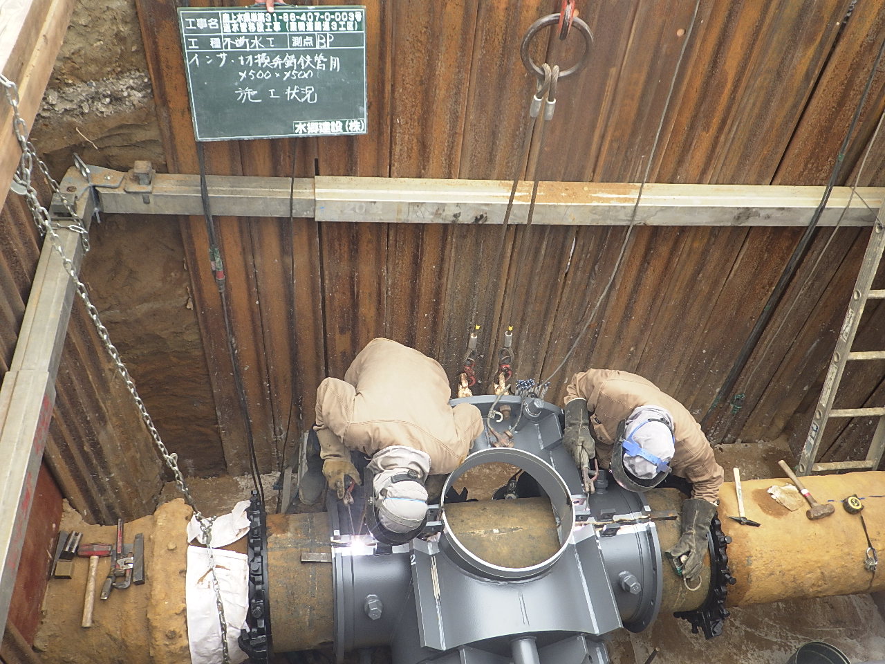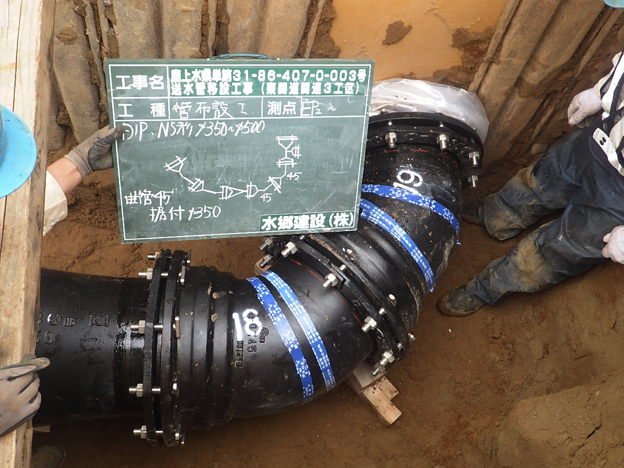 送水管布設工事(DIP NS形 φ500・φ350)、DIP(GX型1種φ150)